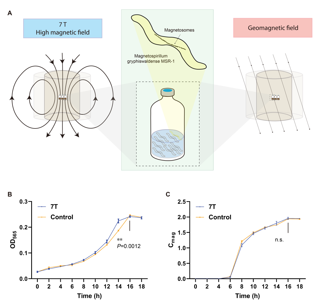 圖1:MSR-1菌株在7 T磁場中的生長加快情況