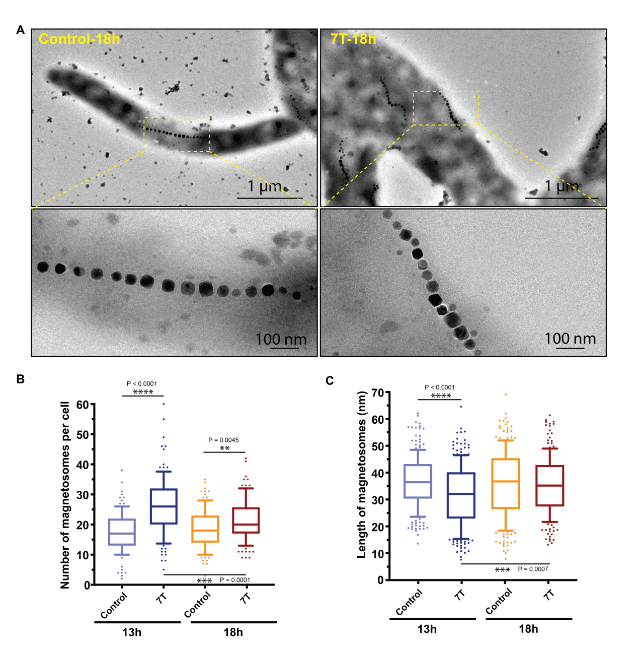 圖2:7 T磁場對MSR-1菌株磁小體生物礦化的影響