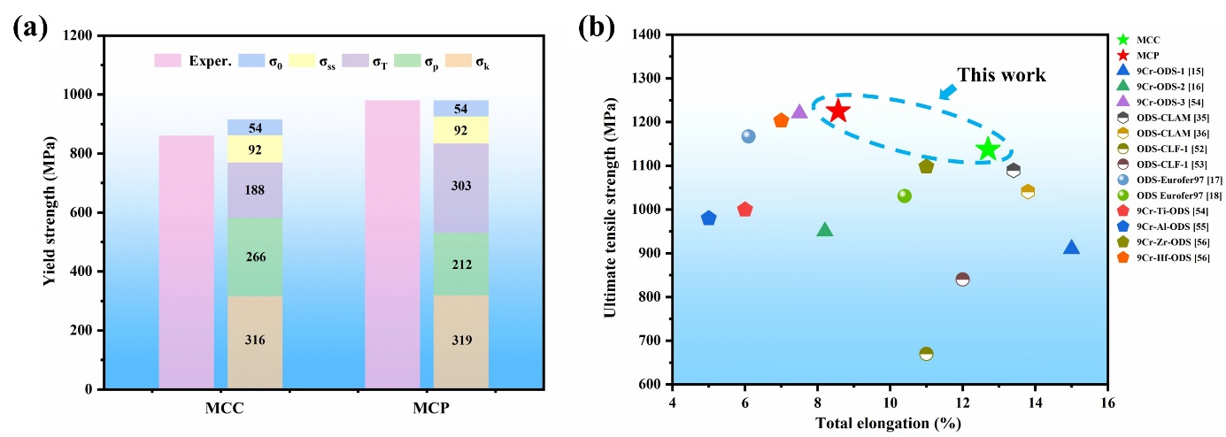 (b) 與參考文獻(xiàn)中回火9Cr-ODS鋼性能比較