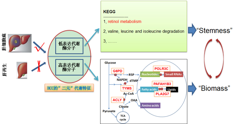 肝細胞癌是全球第六大常見癌癥,其惡性增殖機制與正常肝組織再生修復過程存在關鍵差異。傳統治療手段易產生耐藥性且副作用明顯,急需探索更精準的治療策略。研究團隊通過對比肝癌細胞與良性再生肝細胞的基因表達差異,鎖定六個關鍵代謝酶。這些酶在肝癌中異?;钴S,推動癌細胞快速合成生物大分子(如蛋白質、核酸)實現惡性增殖。其中,ATP檸檬酸裂解酶(ACLY)、葡萄糖-6-磷酸脫氫酶(G6PD)、胸苷酸合成酶(TYMS)等三種酶位于代謝通路上游,成為抑制肝癌增殖的“黃金靶點”。與此同時,研究發現肝癌細胞中視黃醇(維生素A)代謝通路受阻,導致其代謝產物視黃酸(RA)水平顯著降低。而視黃酸恰好是抑制腫瘤干細胞自我更新的關鍵因子?;谏鲜霭l現,科研人員設計出“代謝酶抑制劑+視黃酸”的聯合療法:通過特異性抑制前述三種代謝酶阻斷癌細胞“能量工廠”,同時補充視黃酸抑制腫瘤干細胞再生。實驗顯示,該組合療法在體外實驗中可顯著抑制肝癌細胞增殖,在動物模型中更是展現出比索拉非尼更強的腫瘤抑制效果。