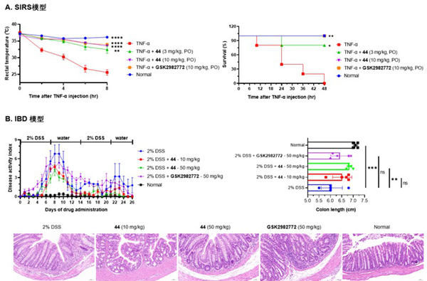 化合物44在多種炎癥性疾病動物模型中的治療效果