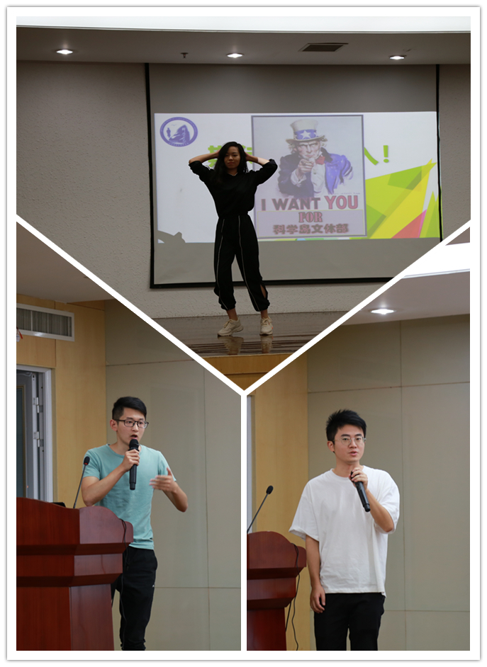 見面會開始,由院研究生會主席白曉偉從歷史由來、組織架構、工作內容、工作方向、精品活動五個方面來介紹研究生會概況,讓參會研一新生對科學島分院研究生會有了一個初步的了解。會議接來下由宣傳部部長奚文灝、辦公室副部長濮陽壽安、權益部部長楊期科、文體部副部長余鑫、學術外聯部部長杜增艷對各自部門的部門架構、成員組成、職責工作和未來規劃進行了詳細的介紹,讓新生對研會有了更深刻的了解,以便自己可以選擇更適合自己的部門。新生后備團團長劉健也對新生后備團的職能和工作做了詳細介紹。此外,文體部部長韓衛民、副部長張智航也為到場新生奉獻了精彩的歌舞表演,“我和我的祖國”快閃總導演秦建敏為大家深情講述了研究生會為快閃制作付出的辛勤努力。之后參會的研一新生逐個進行了自我介紹,讓研會成員對大家有了一個初步了解。上午的見面會在歡快的氛圍中結束。