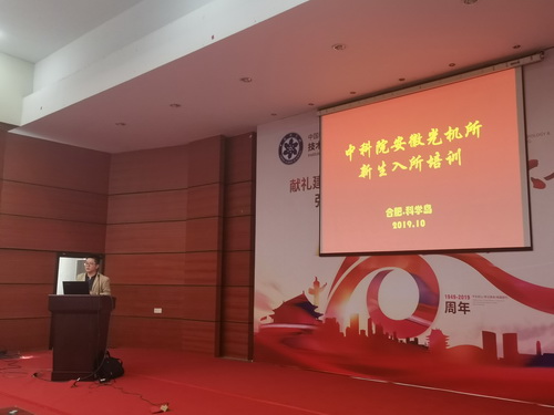 2019年10月15日,安徽光機所新生入所培訓在綜合樓一樓報告廳召開,安徽光機所副所長謝品華,遙感中心洪津研究員,、所科研辦劉萍老師出席了本次會議,安光所2018級碩士研究生2019級博士研究生生參加會議。會議由研究生處秦娟娟老師主持。