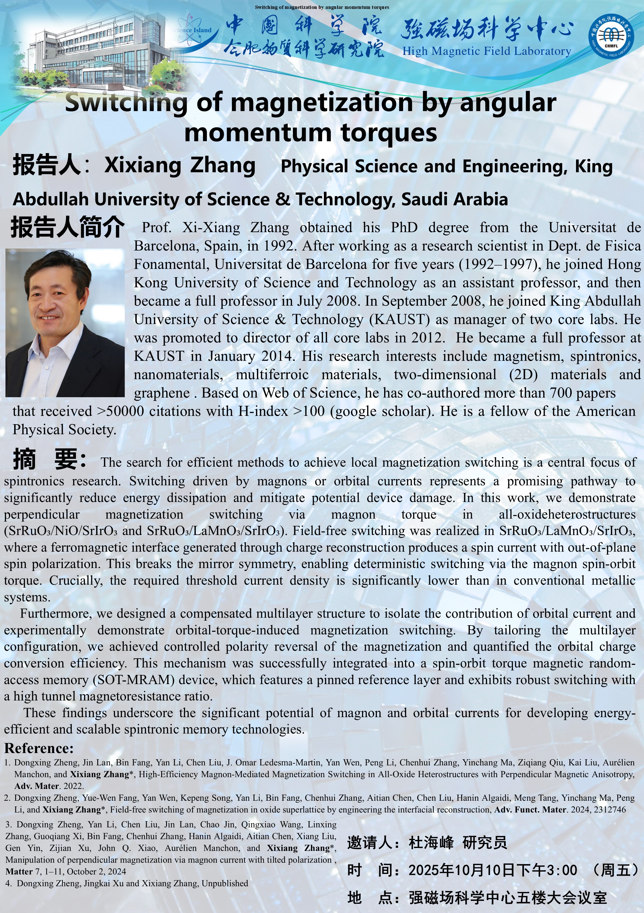 【10.10】學術報告:Switching of magnetization by angularmomentum torques