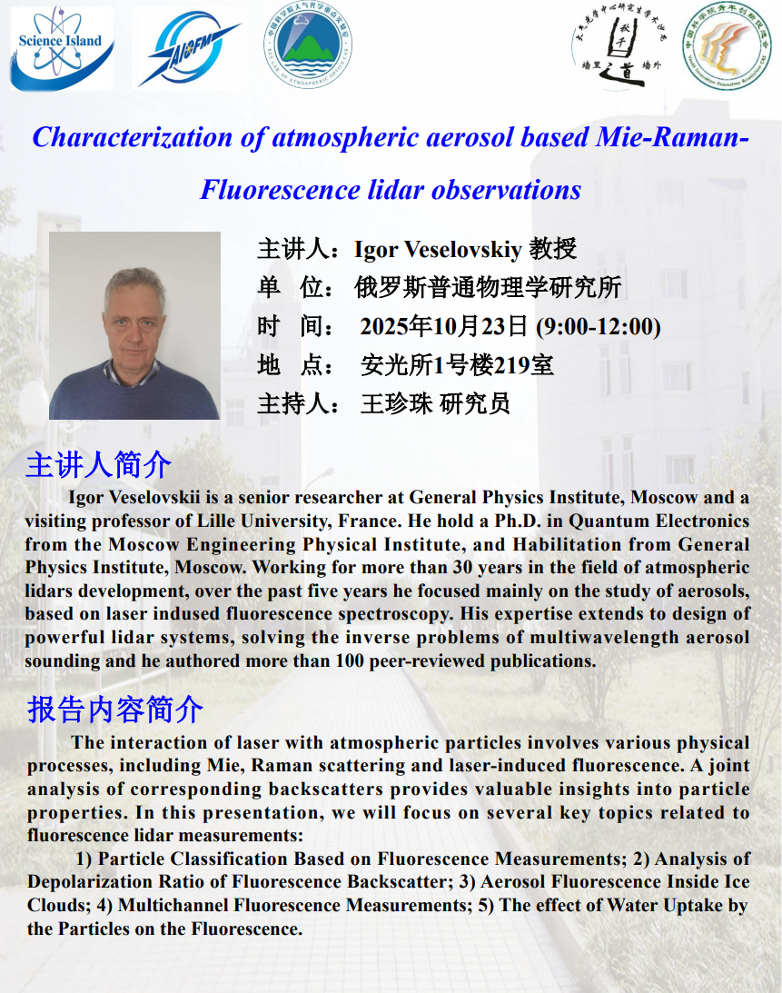 【10.23】學術報告:Characterization of atmospheric aerosol based Mie-Raman-Fluorescence lidar observations