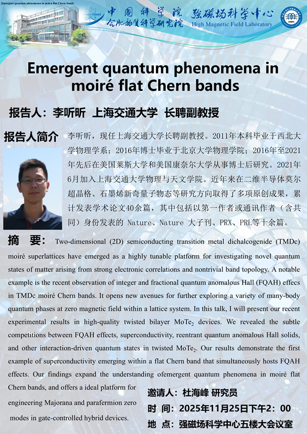 【11.25】學術報告:Emergent?quantum?phenomena?in?moiré?flat?Chern?bands