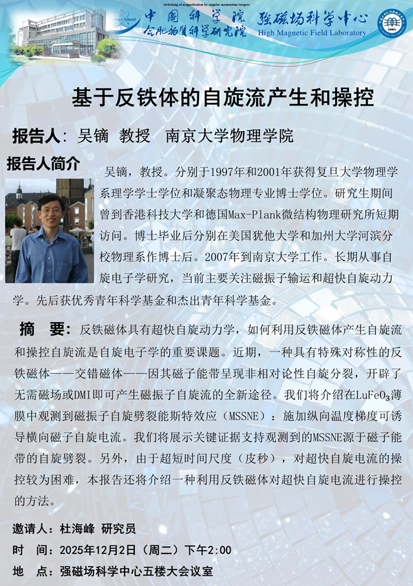 【12.02】學(xué)術(shù)報(bào)告:基于反鐵體的自旋流產(chǎn)生和操控