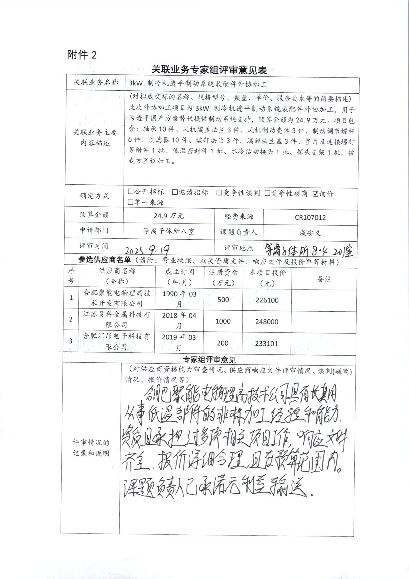 根據(jù)《中國科學(xué)院關(guān)于加強科研項目關(guān)聯(lián)業(yè)務(wù)管理的暫行規(guī)定》(科發(fā)條財字〔2015〕125號)、《中國科學(xué)院合肥物質(zhì)科學(xué)研究院關(guān)于加強科研項目關(guān)聯(lián)業(yè)務(wù)管理的實施細則》(科合院發(fā)資字〔2021〕8號)、《合肥研究院加強關(guān)聯(lián)業(yè)務(wù)管理暫行辦法》(科合院發(fā)資字〔2022〕?1號)、《合肥物質(zhì)院加強關(guān)聯(lián)業(yè)務(wù)管理補充規(guī)定》(科合院發(fā)資字〔2025〕1號)要求,現(xiàn)就我院委托合肥聚能電物理高技術(shù)開發(fā)有限公司進行3kW?制冷機透平制動系統(tǒng)裝配件外協(xié)加工的關(guān)聯(lián)業(yè)務(wù)做公示。